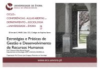 Conferência no âmbito do Ciclo de Conferências e Aulas Abertas do Departamento de Sociologia da Universidade de Évora